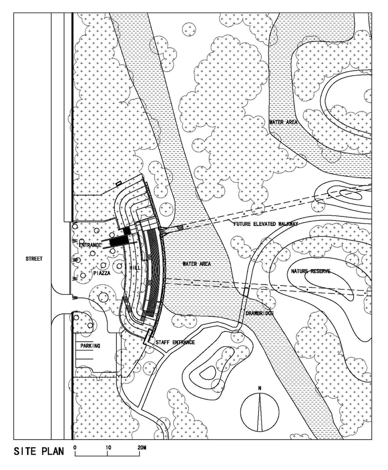 On the north edge of Shanghai city, an isolated wetland of about 10 hectares has remained undisturbed for several decades. Now it becomes a nature reserve and a part of the park system of New Jiangwan City, a new town developed around the wetland. Since the fragile ecological system can only afford guided tours of small groups, it is necessary to establish an exhibition /observation center at its west side for the public to use. In the architect’s long-term plan, two elevated walkways will radiate from the Center into the reserve so the entire area will be accessible to the public.