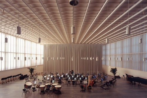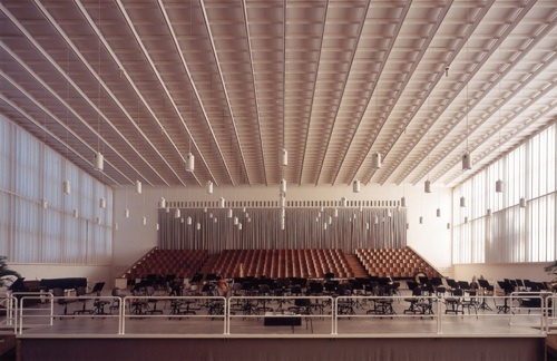 Umbau des denkmalgeschützten Kirchensaales mit fein gegliederter gitterartiger Strukturierung der Decke und der Wände aus dem Jahre 1938 in einen Proberaum für das Orchester des Zürcher Opernhauses