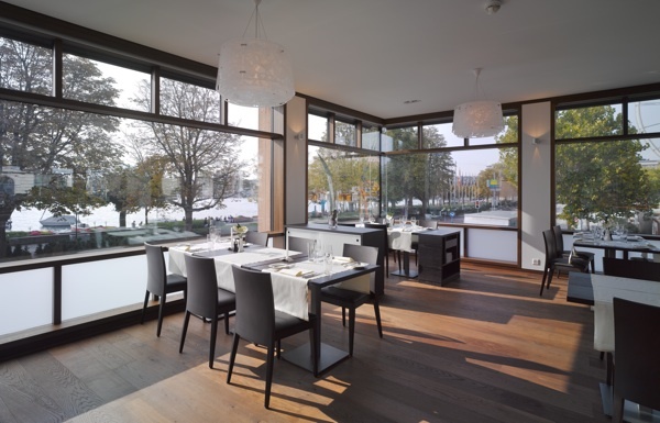 Parkettboden, Akustikdecke und grossflächige Verglasung mit Blick zum See und Sechseläutenplatz