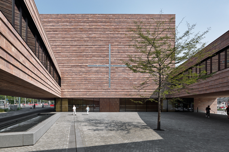 Das Planungsgebiet befindet sich in einem städtebaulichen Umfeld, das im Norden durch das dicht bebaute Stadtzentrum und die Grünanlagen des Leipziger Promenadenrings und im Süden durch die überwiegend gründerzeitlichen, geschlossenen Baustrukturen der Südvorstadt geprägt wird. Um der Besonderheit des Gebäudes und seiner Lage gerecht zu werden wird das unmittelbare Umfeld der Kirche als Platz verstanden, welcher sich einer Passage gleichend durch den Kirchhof zieht. Hierbei steht die Verwendung einer einheitlichen Materialwahl als eindeutiger Kontrast zur Fassade im Vordergrund. Der besondere Charakter des Kirchhofes wird maßgeblich durch einen gezielt gesetzten Solitär und einen Wasservorhang gestärkt. Neben der atmosphärischen Überhöhung dient der Wasservorhang der Minderung der angrenzenden Straßenimission und Klimaverbesserung. Die angrenzende Nonnenmühlgasse wurde in Form eines niveaugleichen und gegliederten „Straßenquerschnitts“ ausgebildet. Die einheitliche Materialwahl in unterschiedlichen „Körnungen“ vermeidet einen gestalterischen Bruch bezüglich der gewünschten „Platzsituation“.