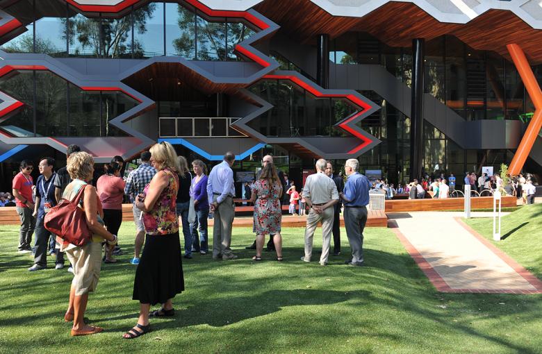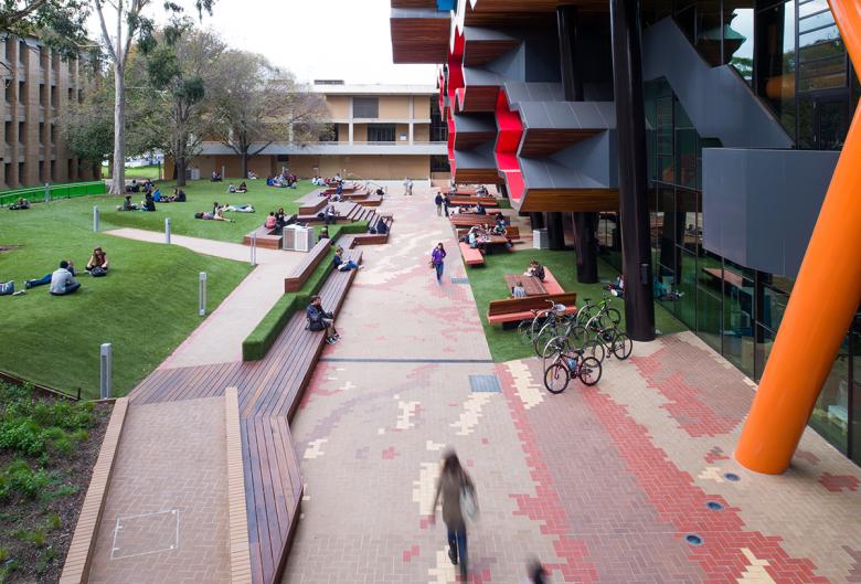 The LIMS building is located in the heart of the LaTrobe Bundoora Campus and provides a new state-of-the-art research and teaching facility. The landscape design contributes to the ‘enlivened’ precinct by providing a diverse range of spaces that enable students to work comfortably outdoors, hold large gatherings or relax between classes.