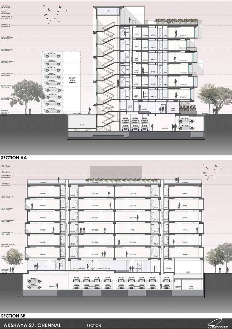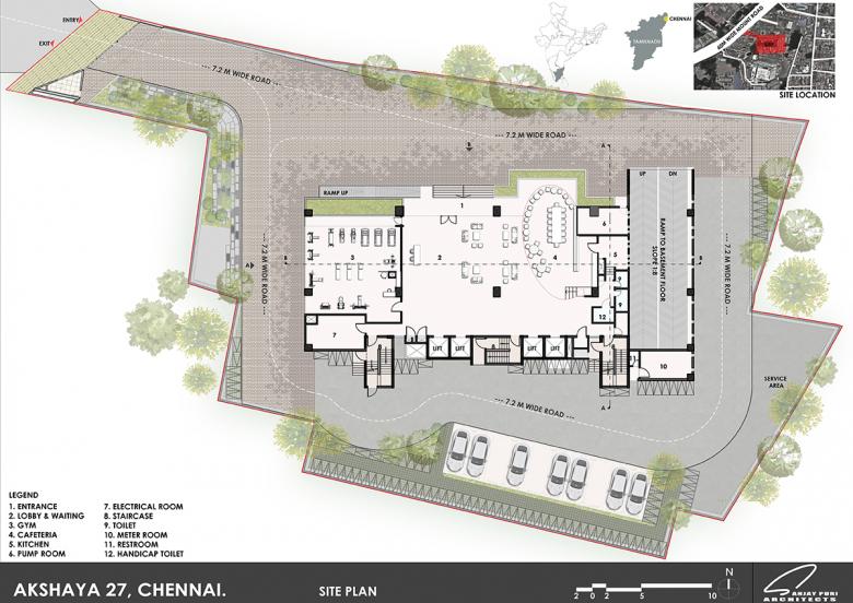 Akshaya 27 is designed in response to the climate & the client’s brief overcoming multiple site restrictions, to create energy-efficient offices that open into outdoor spaces.