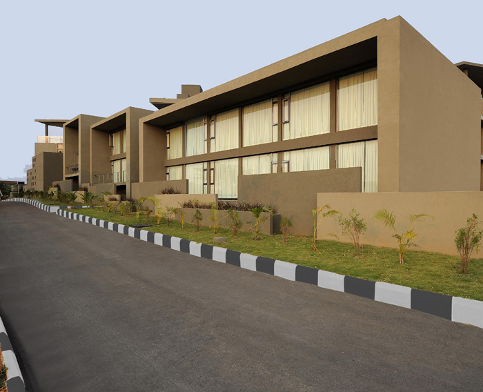 the Client's Requirements Were to Create a Midscale Small Resort Hotel With the Rules Not Permitting a Structure of More Than 2 Levels. 27 Residential Rooms Are Created in 3 Linear Blocks on One Side of the Plot Stepping Down Along the Natural Slope of the Site.