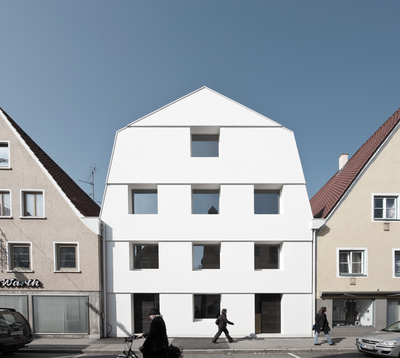 In der südlichen Altstadt Memmingens entstand in direkter Nachbarschaft zum Haus MuUGN ein Stadthaus mit zwei Wohneinheiten. Als "Drei-Fensterhaus" erscheint es zum Straßenraum als urtypisches Bild des städtischen Hauses. Es fügt sich in Dachform und Geschossigkeit in die Häuserzeile der Kemptnerstraße ein. Die Kubatur des Vorgängerbaus wurde übernommen und an heutige Anforderungen angepasst.
