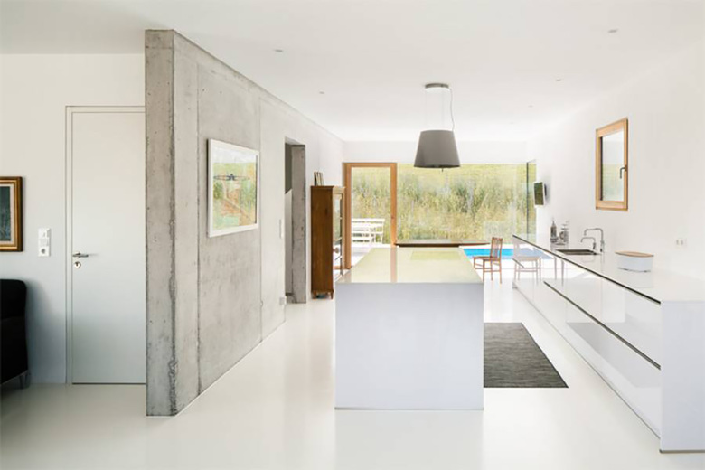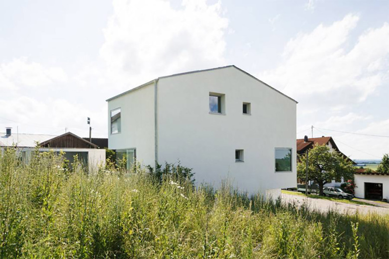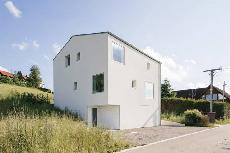 Das turmartige Haus am nördlichen Rand des Dorfkernes von Theinselberg orientiert sich in seinem Volumen und den verwendeten Materialien an den landwirtschaftlichen Gebäuden des kleinen Weilers. Betritt man das Haus, überrascht die Weitläufigkeit und räumliche Vielfalt auf insgesamt 150 m² Fläche. Große, meist fest verglaste Fenster rahmen spezifische Ausblicke und stellen einen starken Bezug zum Naturraum her. Durch den reduzierten Materialeinsatz und die ausgewählten, natürlichen Materialien entsteht eine ruhige Atmosphäre, die die Qualitäten des Ortes stärkt.