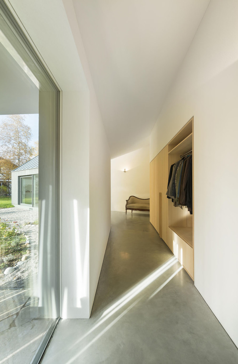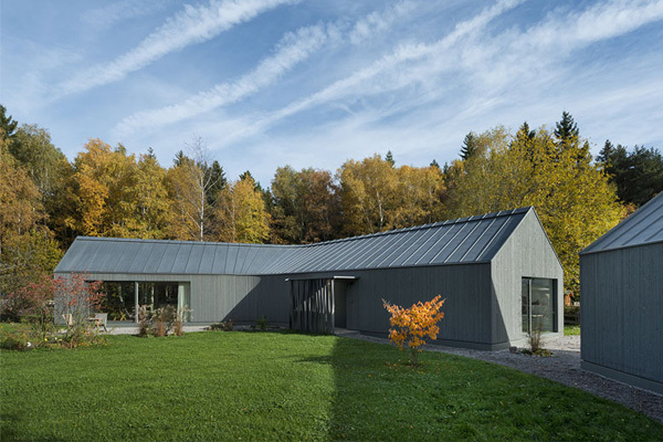 Die Lage des Hauses, inmitten des 2000 m² großen Wiesengrundstückes am Ortsrand einer Allgäuer Gemeinde, definiert durch die fingerartig in die Landschaft ragenden Gebäudeteile Außenräume unterschiedlicher Atmosphäre und Privatheit. Entsprechend ihrer Ausrichtung werden sie als Obst-, Kies-, Wellness- und Waldgarten mit Schwimmteich, Außenküche und Terrassen genutzt. Das eingeschossige Gebäude mit Satteldach wurde als barrierefreies Wohnhaus konzipiert. Um einen zentralen Kern mit Nebenräumen gliedert sich der y-förmige Grundriss. Auf diese Weise werden unterschiedliche Ausblicke in die Umgebung inszeniert und ein Wechselspiel aus Lebens- und Rückzugsräumen geschaffen.