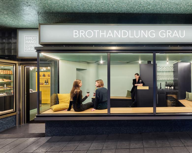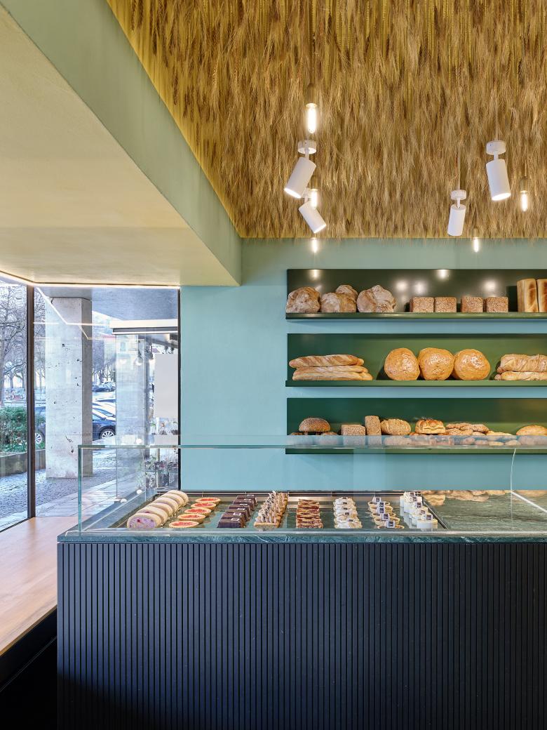 Die lediglich rund 35 Quadratmeter große Fläche der Brothandlung gliedert sich in einen Verkaufsraum und einen kleinen Barbereich. Schon von außen erkennt man durch die Schaufenster, dass es sich bei dieser Filiale um mehr als nur eine reine Bäckerei handelt. Neben den typischen Backwaren im Verkaufsraum werden in den Räumlichkeiten auch Wein ausgeschenkt und fein belegte Brote zur Verköstigung in der kleinen Ein-Raum-Schaufenster-Bar angeboten.