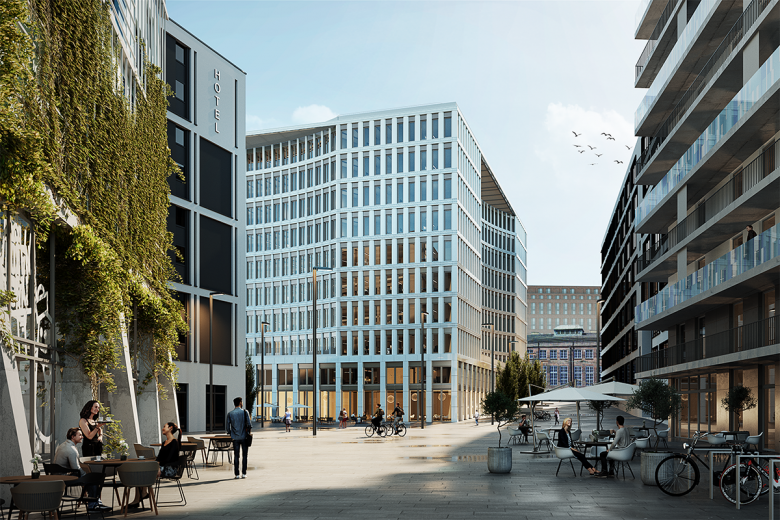 Auf einem der letzten freien Grundstücke in der Hamburger Innenstadt, in Sichtweite des Hauptbahnhofs und der Kunstmeile, entsteht das Büro- und Geschäftshaus „ConneXion Office“. Der Entwurf für den Bebauungsplan basiert auf einem städtebaulichen Wettbewerb aus dem Jahr 2001. Der in diesem vorgegebene, dreieckige Zuschnitt des Grundstücks erforderte eine intelligente Lösung hinsichtlich der großen Gebäudetiefe im Zentrum des Dreiecks. Ein Lichthof und die kompakt im Inneren angeordnete Erschließung und Versorgung bringen viel Tageslicht in die Büroflächen. Mit einer leicht konvexen, den Bahngleisen zugewandten Hauptfassade schließt das Gebäude den Block. Die seitlichen Fassaden schwingen jeweils im mittleren Bereich oberhalb des Sockels konkav zurück und weiten so den Außenraum zu den Nachbargebäuden auf.