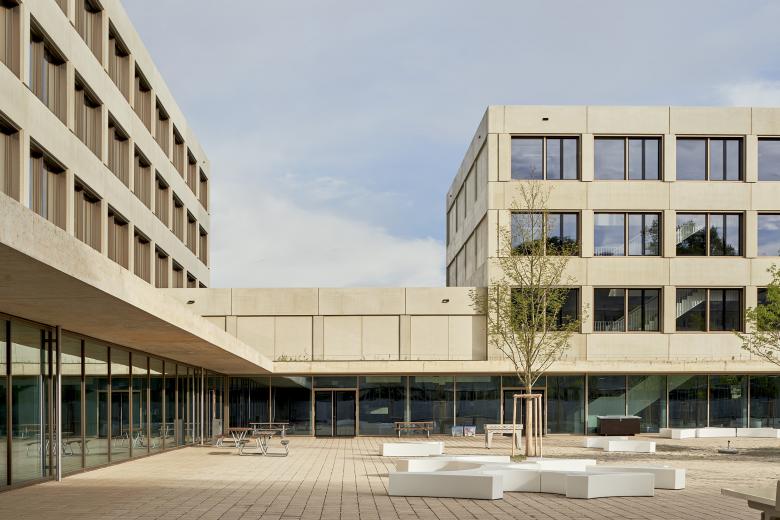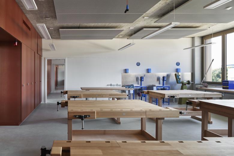 Das Schulhaus Sandgruben ist Teil der 2012 lancierten Schulraumerneuerung zur Umsetzung des HarmoS-Konkordats und seit über vierzig Jahren der grösste Schulhausneubau im Kanton. Im Sinne einer pädagogischen Neuausrichtung stand die Absicht im Zentrum, die Schule als Ganzes und nicht den einzelnen Klassenverbund zum Bezugspunkt des Schulalltags zu machen. Als beziehungsreiche und vielfältig nutzbare «Möglichkeitsorte» kommt dabei den Übergangsräumen eine zentrale Bedeutung zu. Zusammen mit dem Altbau spannt der windmühlenförmige Neubau einen grossen Pausenhof auf. An der Schnittstelle der unterschiedlichen Trakte liegt die Haupthalle. Der Regelunterricht findet in sogenannten Lernateliers statt, einem durchlässigen Cluster aus Inputraum, Gruppenraum und Atelier mit Einzelarbeitsplätzen. Wie später in der Berufswelt, sind die Klassen alters- und niveaudurchmischt. Seit dem Schuljahr 2016/17 besuchen rund 570 Schülerinnen und Schüler den Unterricht im Sekundarschulhaus Sandgruben, wovon rund ein Fünftel mit besonderen Förderangeboten. Das Gebäude soll ihnen einen stabilen Rahmen bieten, der gleichzeitig flexibel genug ist, sich mit der Gesellschaft weiterzuentwickeln und neuen Anforderungen gerecht zu werden.