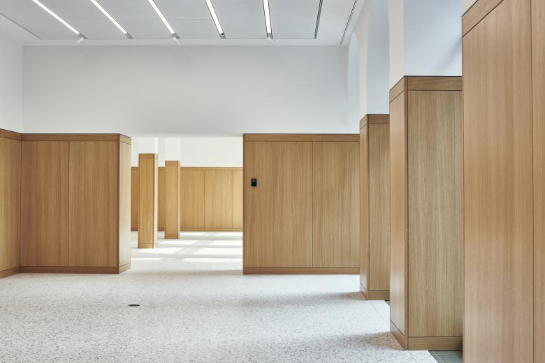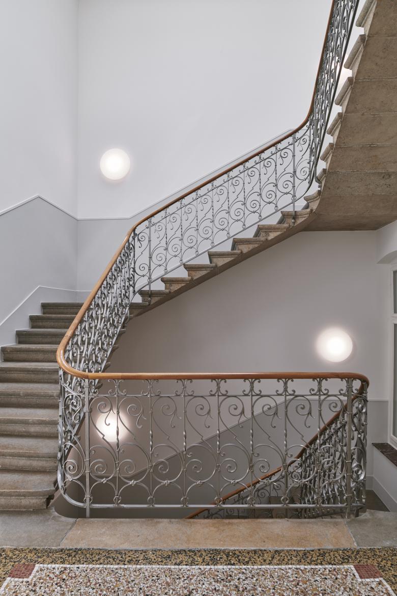 Das Geviert am Zürcher Stadthausquai wurde 1889 vom Architekten Adolf Brunner als herrschaftliche Wohnüberbauung erstellt. Es besteht aus fünf Parzellen, wovon die Schweizerische Nationalbank ab 1969 vier schrittweise erwarb und zu Büros umnutzte. Der Gesamtumbau ertüchtigt die Liegenschaft baulich und betrieblich für die nächsten dreissig Jahre. Zur Bewahrung der reichhaltigen Stuckdecken erfolgt die haustechnische Erschliessung der Büroräume primär im Bodenbereich. Die stark verstellte Kuppel wurde bereinigt und ist nun als Cafeteria erlebbar. Dank dem neuen Informationszentrum ist ein Teil des Erdgeschosses öffentlich zugänglich.