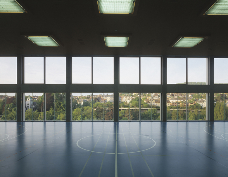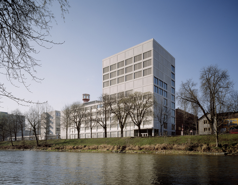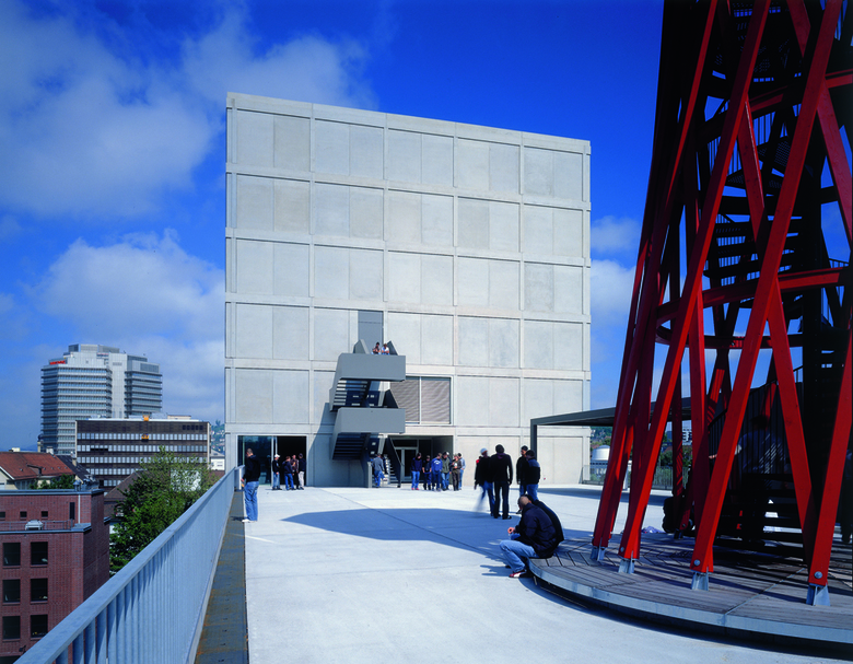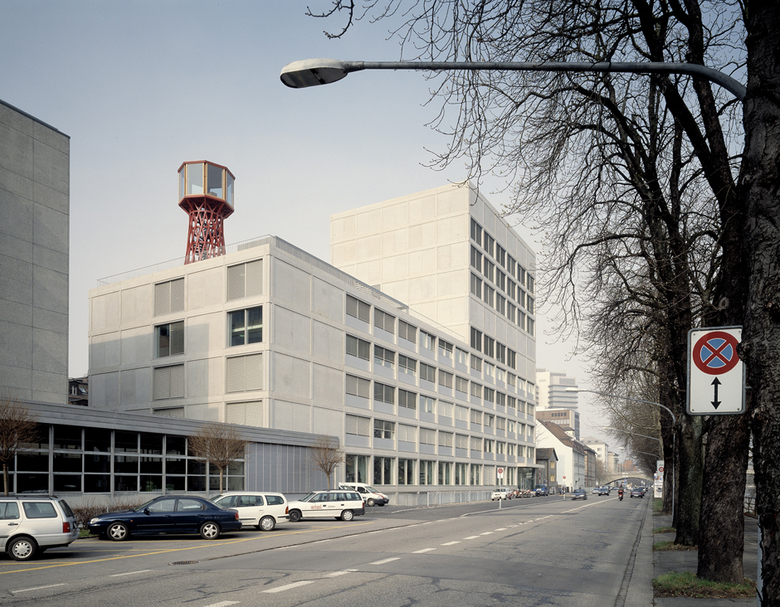 Die Technische Berufsschule Zürich (TBZ) musste im Zuge des Gestaltungsplans Zürich-Nord ihr Schulgebäude in Zürich Oerlikon aufgeben. Am Sihlquai sollte ein Neubau in unmittelbarer Nähe zum Hauptgebäude der TBZ Ersatz bieten. Stücheli Architekten gingen1997 aus dem international ausgeschriebenen Wettbewerb des Kantonalen Hochbauamts als Sieger hervor. Um das Bauvolumen von rund 3000 m3 in die Topografie einzufügen, wählte man einen L-förmigen Baukörper. Der niedrige Gebäudeteil übernimmt die Höhe des angrenzenden Stammhauses, während der Turm die benachbarten Bauten um sechs Geschosse überragt. Damit ergänzt der Neubau die Reihe der markanten Gebäude entlang des Flussraums und verweist auf seine öffentliche Nutzung. Die Erschliessung erfolgt hauptsächlich von der Ausstellungsstrasse her; ein zweiter, städtebaulich übergeordneter Eingang gewährt allen ausserschulischen Nutzern am Sihlquai Einlass. Die einem strengen Raumgitter folgende Grundstruktur des Gebäudes wird auf der Fassade sichtbar, als feines Netz aus Stützen und Sturzbändern. Funktionale Ausfachungen – vorgefertigte Decken-, Wand- und Fensterelemente – fügen sich in die massiven Rahmen ein und verleihen dem Bau eine zurückhaltende Eleganz. Die reduzierte Formensprache setzt sich im Inneren fort: Stützen strukturieren den Raum und lassen einer zukünftigen Nutzung maximalen Spielraum. Die Materialisierung orientierte sich an der Bedeutung der Räume – für die Erschliessungszonen wurden harte Materialien wie Beton und Kunststein verwendet, für die Unterrichtsräume weiche Oberflächen wie Holz, Tapeten und Kautschuk. Das Gebäude ist Minergie-zertifiziert, Heizung und Warmwasseraufbereitung für die rund 7‘000 m2 Nutzfläche erfolgen über eine durch Gasfeuerung ergänzte Wasserwärmepumpe.