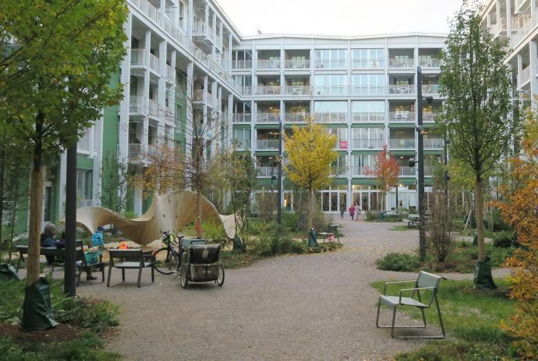 Das dichte Grün trägt trotz darunterliegender Tiefgarage zum besseren Stadtklima bei,