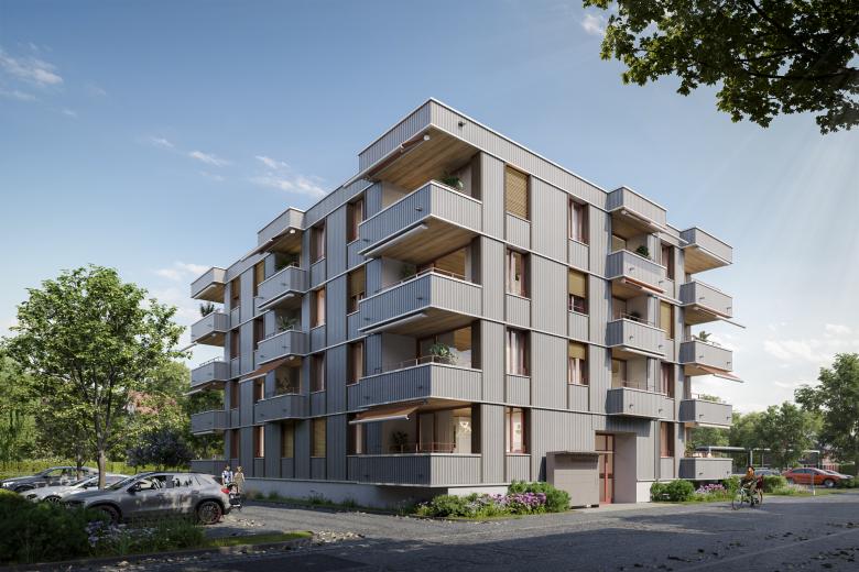 Innere Verdichtung, konsequente Holzbauweise und Nachhaltigkeit, digitale Projektplanung in BIM, Mobilitätsverhalten und Verzicht auf eine Einstellhalle: All diese aktuellen Themen vereint das Neubau-projekt mit 22 Mietwohnungen beim Bahnhof Niederscherli.