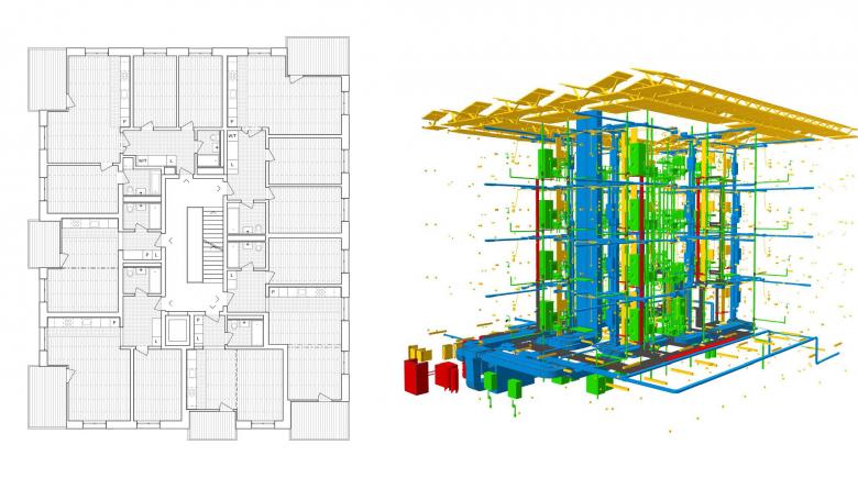 Eine modellbasierte integrative Planung (BIM) erlaubt eine zielgerichtete, lösungsorientierte und effiziente Zusammenarbeit aller Projektbeteiligten. Voraussetzung dafür sind klar definierte Projektanforderungen, gut strukturierte Prozesse und eine transparente Kommunikation. Die Konstruktion wird digital entworfen und geplant. So wird das Gebäude zweimal gebaut, einmal am Computer und ein zweites Mal vor Ort. Diese Vorgehensweise gewährleistet frühzeitig eine hohe Planungs- sowie Kostensicherheit, spart somit Ressourcen und Zeit und hilft, Fehler aller Beteiligten zu verhindern.