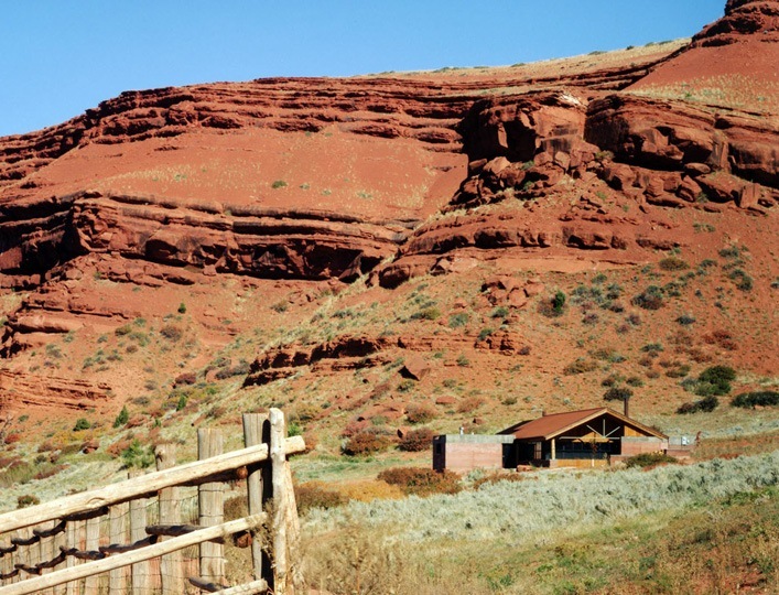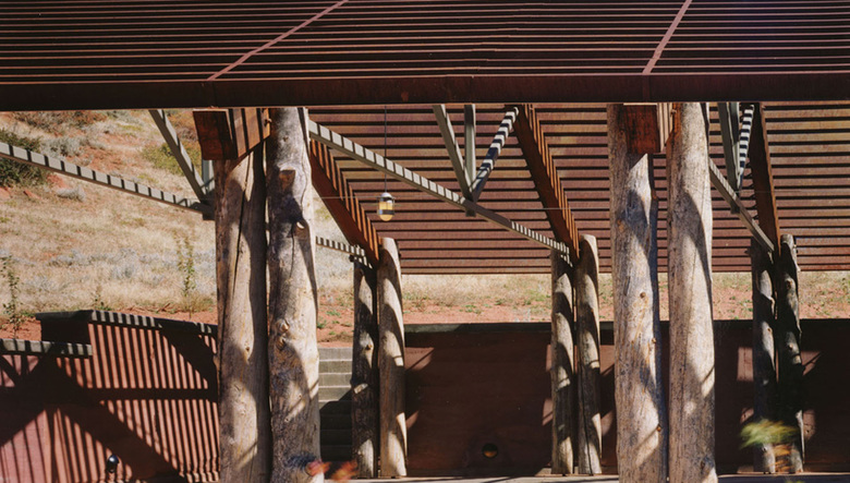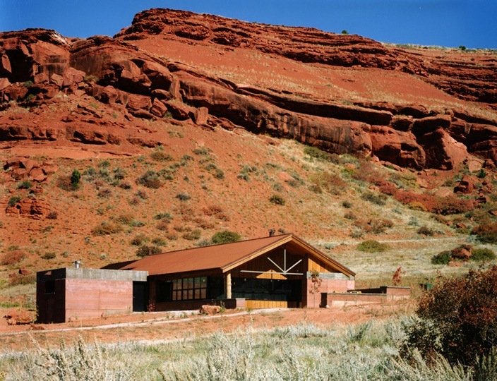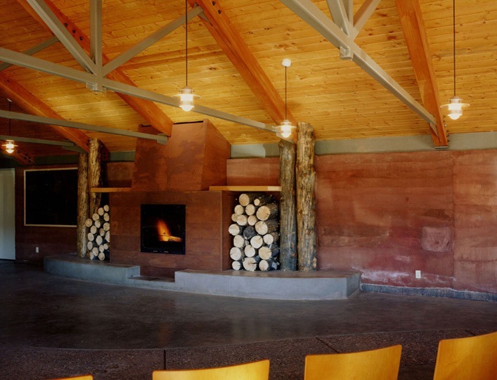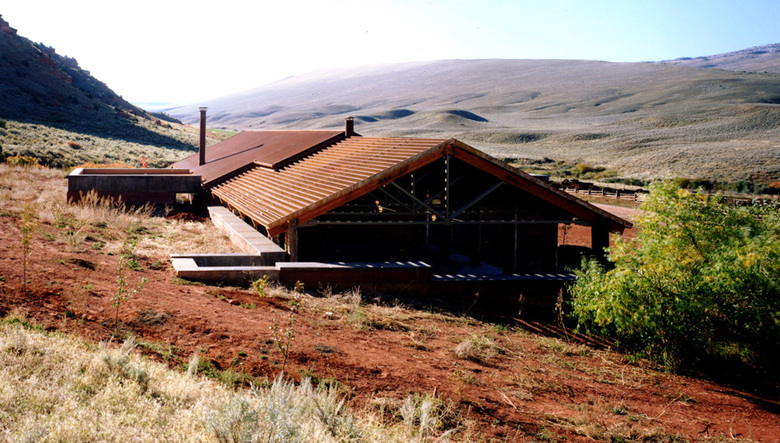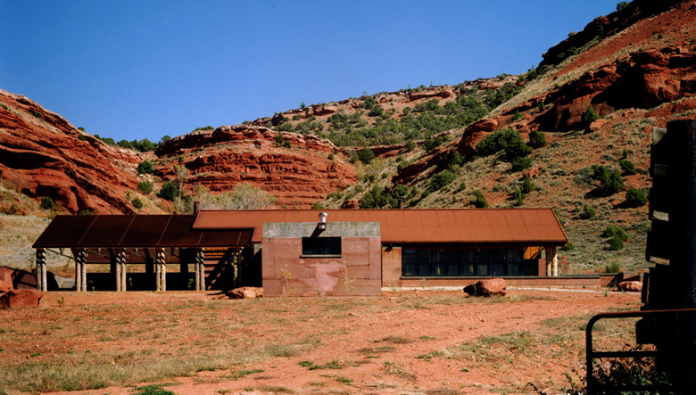 Home to the Nature Conservancy’s cow-calf ranch and educational center, the Red Canyon Ranch facility near Lander, Wyoming, required a design that reflected a sense of place and minimized impact on the land, while accommodating a diverse user group. Conceptualized as a ‘stop-along-the-way’ en route to the brim of the canyon, the ranch building was intended to serve as a living classroom for conservation principles in much the same way that the conserved, resource-rich canyon itself does. The trailhead road is expressed through exposed aggregate in the concrete floors that represents its would-be path as it runs through the Red Canyon Ranch building. The locally-sourced rammed earth walls that comprise the structure’s exterior envelope not only help reduce environmental impact by minimizing construction waste, heat/cooling loss, and overall carbon emissions, but also help lessen the visual impact of the building on the landscape as they seamlessly blend with their natural surroundings. To further integrate the building into its canyon panorama and evoke a sense of place, architects chose ungalvinized corrugated mild steel for the roof trellis and panels, allowing them naturally to develop the reddish patina of age.