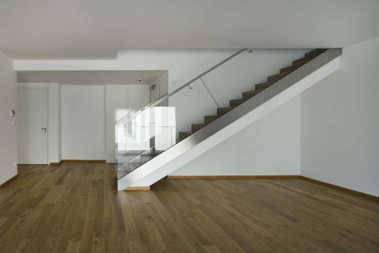 The ground floor consists of a single-storey glazed plinth, which is dedicated to services and commercial and administrative functions. Five irregular prisms with apartments of various sizes emerge from the ground floor. Their smaller scale and brick cladding, create a gradual transition from solid blocks on the west side to the existing Sacre Coeur park on the east. The roof gardens on the 2nd floor level forms green courtyard spaces between apartments. The recessed 4th floor offers terraces and gardens. Parking spaces, storages and technical equipment are located in the basement.