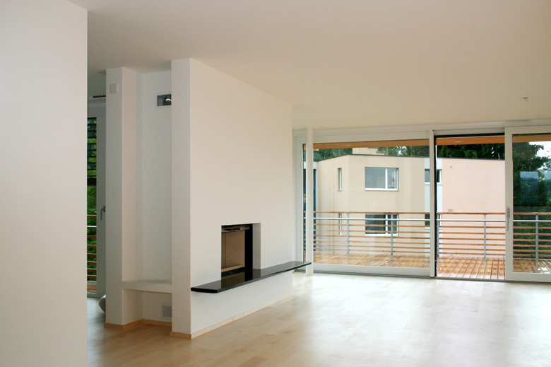Die freie Grundrissform ermöglichte es, das Volumen nahe an die Nordecke des Grundstücks zu schieben, wodurch genügend besonnter und gut nutzbarer Aussenraum für die Erdgeschosswohnungen entstand. Die grossen Fensteröffnungen sind an der langen Fassadenabwicklung von Osten bis Westen platziert und können so beträchtliche Energiegewinne erzielen. Dadurch konnten die Dämmstärken trotz des MINERGIE-Standards auf ein übliches Mass reduziert werden.