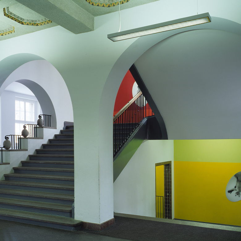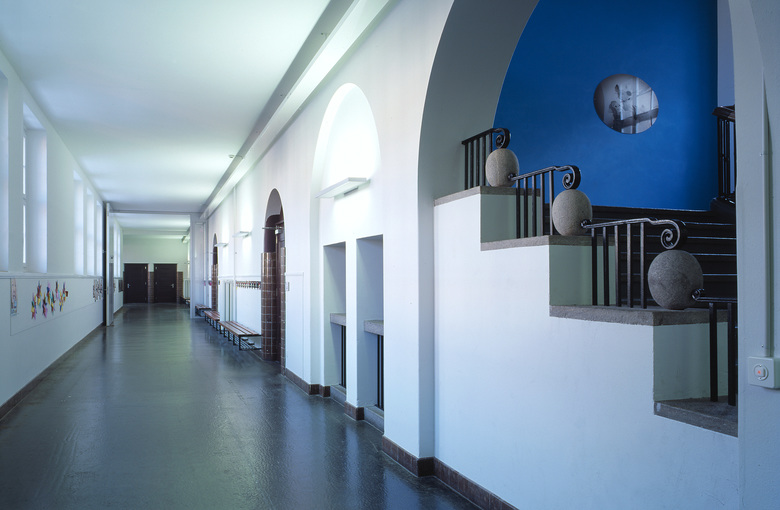 Im Inneren wurde durch geschickte Organisation der Grundrisse zusätzliche Räume verfügbar. Im zweiten Obergeschoss wurde daraus sogar ein Singsaal bzw. unter Einbezug der Halle ein Versammlungsraum. Zur Klärung von unübersichtlichen oder verbauten Situationen wurde nur örtlich eingegriffen.