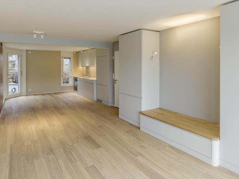 Die 5.5-Zimmerwohnung im Attikageschoss wurde bisher wenig verändert und durfte nach über zwanzig Jahren den neuen Bedürfnissen der Bauherrschaft angepasst werden.