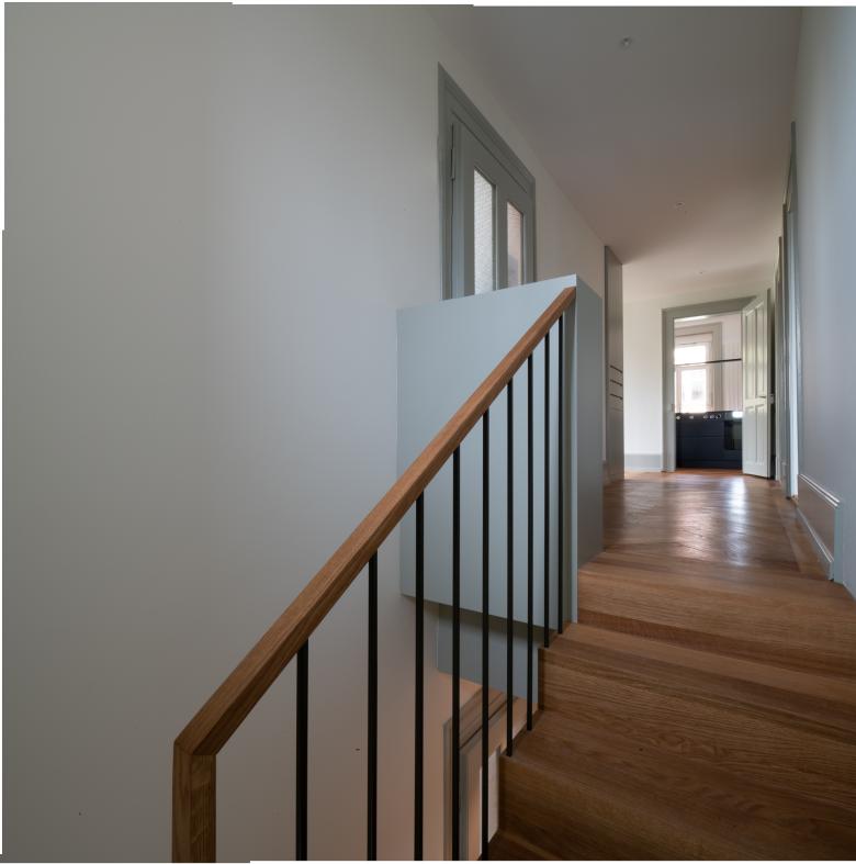 Die in der Zeit des Historismus erbaute und mit gotischen Elementen versehene Liegenschaft ist gut unterhalten und zu grossen Teilen saniert und umgebaut. In Zusammenarbeit mir der städtischen Denkmalpflege und der Bauherrschaft wurde der Wunsch nach einer grösseren Familienwohnung umgesetzt. Durch die Zusammenlegung der beiden Dreizimmerwohnungen im ersten und zweiten Obergeschoss wurde dies gekonnt erreicht.