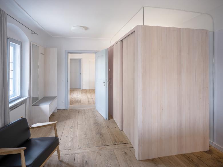 Für die neu einzubauenden Bauteile wurden hochwertige, handwerklich verarbeitete Materialien verwendet, deren Oberflächen im Dialog mit der historischen Bausubstanz stehen.
