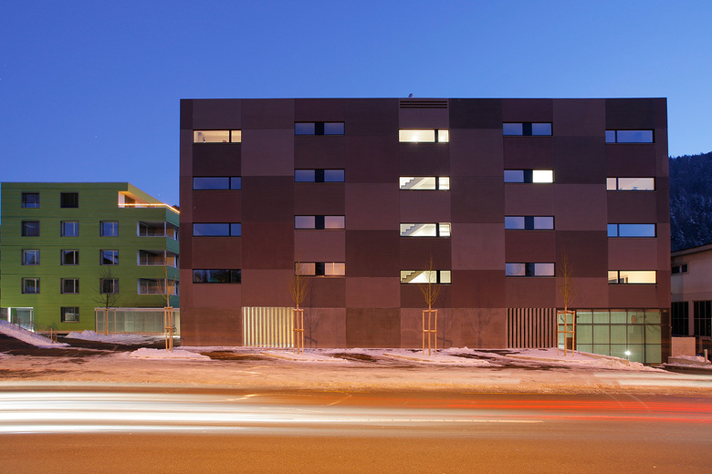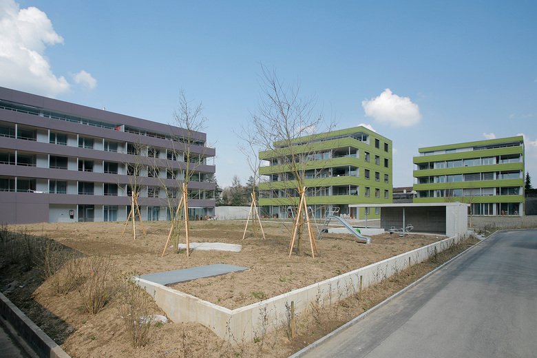 Das Baufeld auf dem Gebiet der ehemaligen Gärtnerei liegt an der alten Wegverbindung von Luzern nach Littau. Mit ihrer Ausrichtung übernehmen die neuen Gebäude das Überbauungsmuster der angrenzenden Bauten und bilden zusammen mit einer der Geländekante folgenden Steinmauer dreiecksförmige Höfe. Von den einzelnen mit Blutbuchen bepflanzten Höfen werden die Häuser über einen gedeckten Zugang erschlossen. Die Gebäudekörper sind unterschiedlich gestaltet. Das Langhaus parallel zur Strasse ist mit Betonelementen strukturiert, verschiedene silber-violett Töne differenzieren diese Elemente fein voneinander. Die drei Punkthäuser sind im Kontrast dazu mit einer in lichten Birkengrüntönen gestrichenen Holzschalung verkleidet.