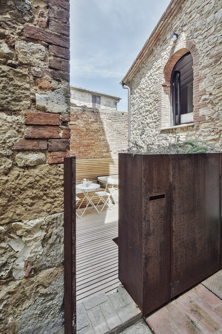 The restoring intervention involves a little building, located at the border of the consolidated urban fabric of Trequanda, a small village in a hilly Tuscan area, the so called “creste senesi”.