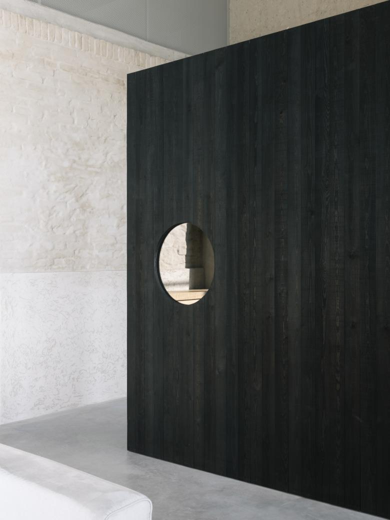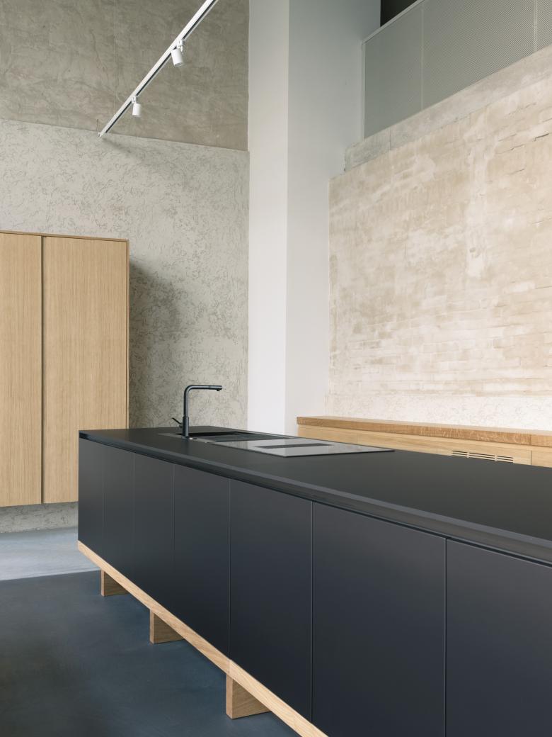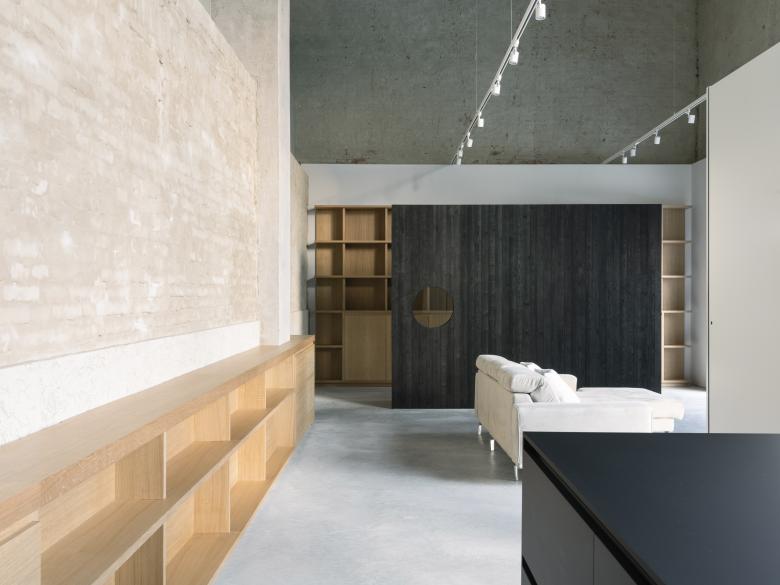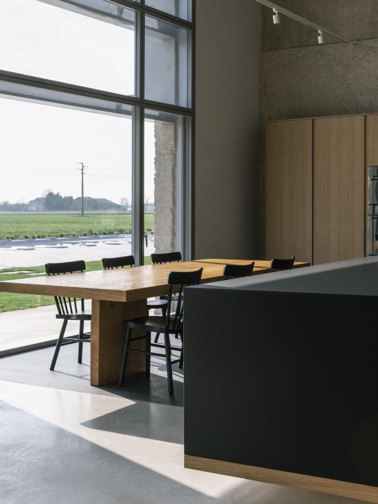Al piano terreno il grande vuoto è gerarchizzato dagli elementi di arredo che definiscono i luoghi rituali dell'abitare.