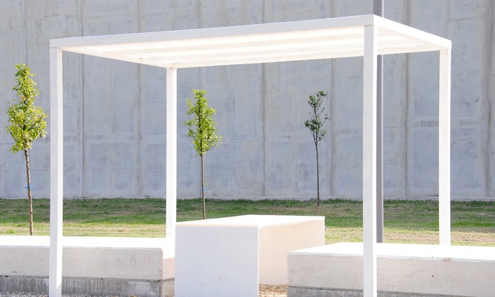 In a suburban area, devoid of rules and hierarchies, a big bench acts as an ordering element able to return a character and identity to an undifferentiated background.