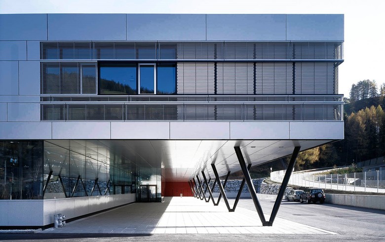 Die Unternehmenskultur des Kunden (eine reine Produktivgenossenschaft) sowie eine Metallverarbeitung auf hohem Niveau standen für die Leitidee des „Fassadenbandes“ Pate. Eine vorgehängte Metallstruktur fasst formal die unterschiedlichen, in ihren Funktionen (Produktion, Lager, Forschung, Verwaltung) klar voneinander unterscheidbaren Baukörper zusammen und spiegelt so den Genossenschaftsgedanken wider. Metall und seine vielfältigen hochwertigen Verarbeitungsmöglichkeiten werden als Imageträger eingesetzt.