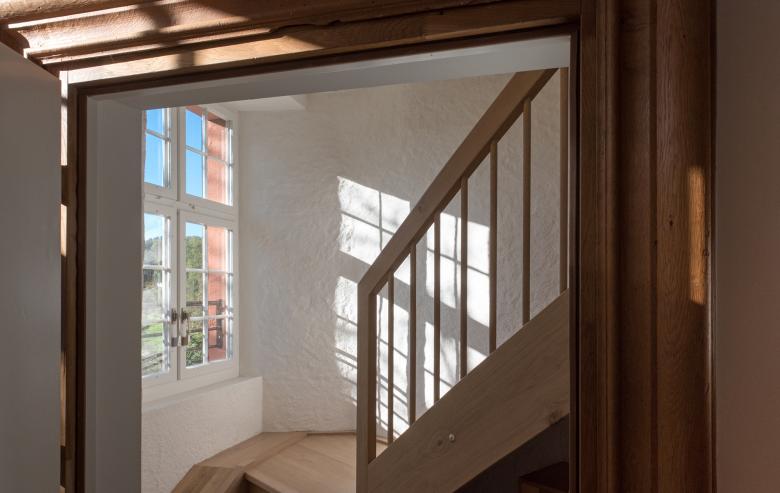 Im zuvor ungenutzten Dachgeschoss liess die Stiftung nun sieben Schlafzimmer und vier Bäder einbauen. Eine grosse Herausforderung war es, unter Berücksichtigung aller Vorgaben genügend Tageslicht in die Räume zu bekommen. Schliesslich entschied man sich für den Einbau von Sattel-Lukarnen und kleinen Dachfenstern.