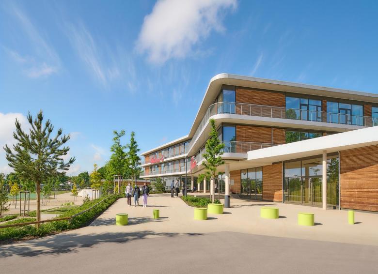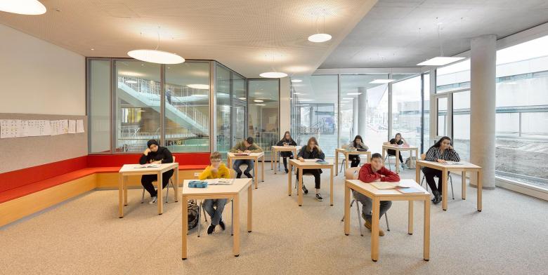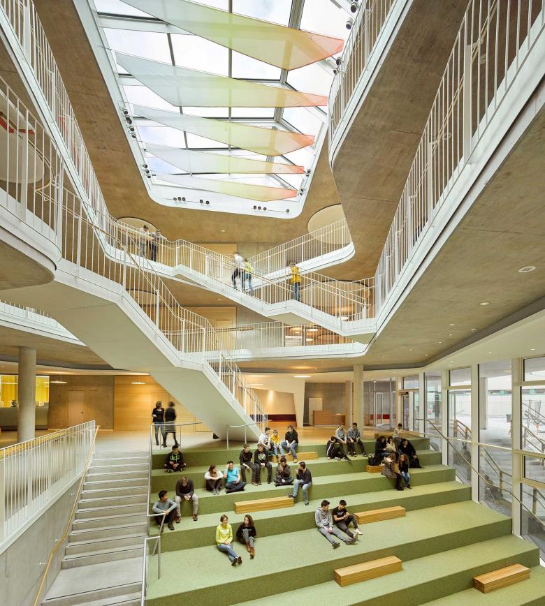 Das Hauptziel des architektonischen Konzepts war es, einen Raum zu schaffen, der in den kommenden Jahren auf mögliche Bildungsentwicklungen ausgerichtet sein soll. Es war wichtig, dass die Struktur flexibel genug war, um einen Lehrplan in einer Phase des didaktischen Übergangs zu ermöglichen. Das Design soll ein starkes Identitätsgefühl fördern und sich gleichzeitig reibungslos in den bestehenden Schulcampus integrieren. Ein Schulhof in der Mitte des Campus wird mit dem angrenzenden Gymnasium, dem Paul Klee Gymnasium, geteilt. Der geräumige Bereich bietet den Schülern beider Schulen Zimmer für Mittags- oder Nachmittagsaktivitäten. Die Topographie des Geländes wurde verwendet, um die Nord-Süd-Achse zu erhalten, die über den verkehrsfreien Schulbereich verläuft, und ermöglichte es, diese Achse so umzugestalten, dass sie behindertengerecht wäre.