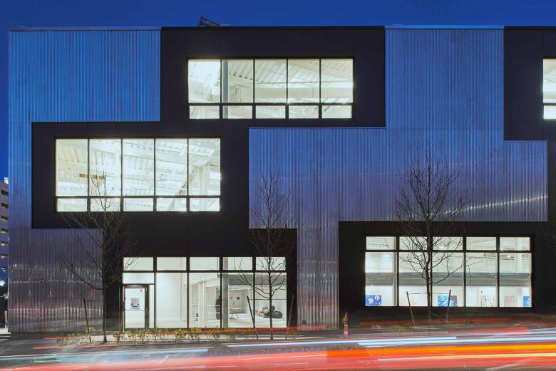 Die geradlinige Fassade des Gebäudes wurde in den zentralen Bereichen des Grundrisses mit großzügigen Glasfronten ausgestattet, so dass Tageslicht in die Ausstellungs-, Veranstaltungs- und Empfangsbereiche fallen kann und die Aktivitäten und die Kunst im Inneren des Baus von der Straße aus eingesehen werden können. Diese „Ladenfenster“ wirken optisch durch Umrandungen aus dunkelgrauen Metallplatten größer. Sie sind von einer Fassade aus einer geriffelten Edelstahlverkleidung umgeben die einen Bezug zur Außenansicht des ursprünglichen Epicenter sowie dem industriellen Charakter des historischen Hafenviertels von South Boston herstellt.