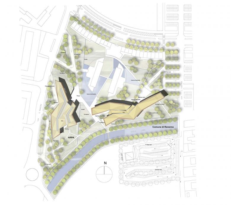 Sowohl das neue Labor- und Verwaltungsgebäude der ARPA (Agenzia Regionale Prevenzione e Ambiente Delli Emilia-Romagna) und das neue Gebäude für die Stadtverwaltung befinden sich am westlichen Rand der Stadt Ravenna.