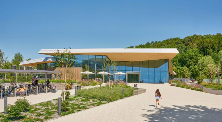 Mit dem Schwaketenbad in Konstanz ist das größte Freizeitbad am Bodensee entstanden. Reizvoll am Stadtrand gelegen ist der Neubau auf einem naturnahen Areal entstanden, das bereits das ursprüngliche, 2015 bei einem Großbrand zerstörte Hallenbad beheimatet hatte.