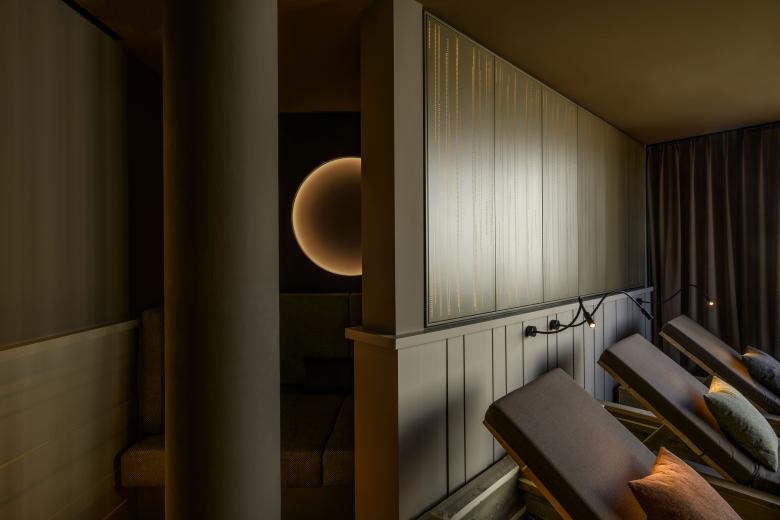 Als Refugium mit meditativem und naturnahem Charakter will er ein Abtauchen von Körper und Seele gleichermaßen bewirken. Dies geschieht durch eine weiche harmonische Formensprache, erdige Farben und natürliche Materialien. Die Rhythmisierung von Flächen und Raumabfolgen sowie eine Lichtführung, die mit Transparenzen und Reflektionen spielt, schaffen die gewünschte meditative und zugleich sinnliche Atmosphäre.
