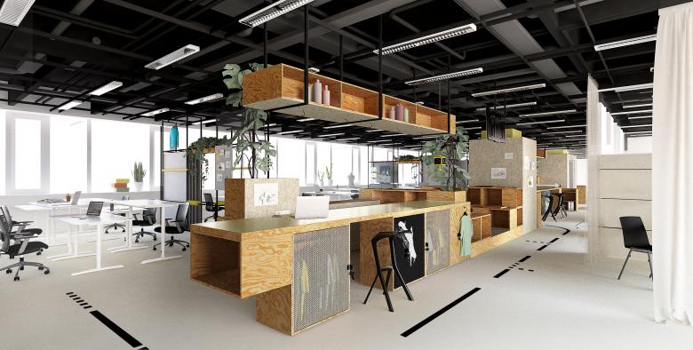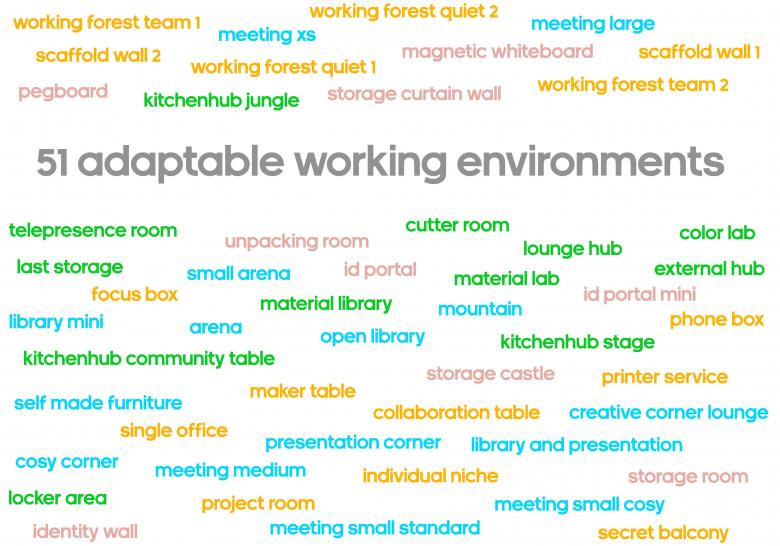 Caramel entwickelte für ein Fashion Label in Deutschand 51 aneigenbare Arbeitswelten und setzte sie sogleich in einfacher aber innovativer Ausführung um. Der Kontrast des Hightech der hochentwickelten Materialien und Technologien der Artikel stehen einfallsreichem Lowtech in Materialität und „Making of“ der Arbeitswelten gegenüber, die die Coolness und Kreativität der Mitarbeiter gerade dadurch zu beflügeln scheinen.