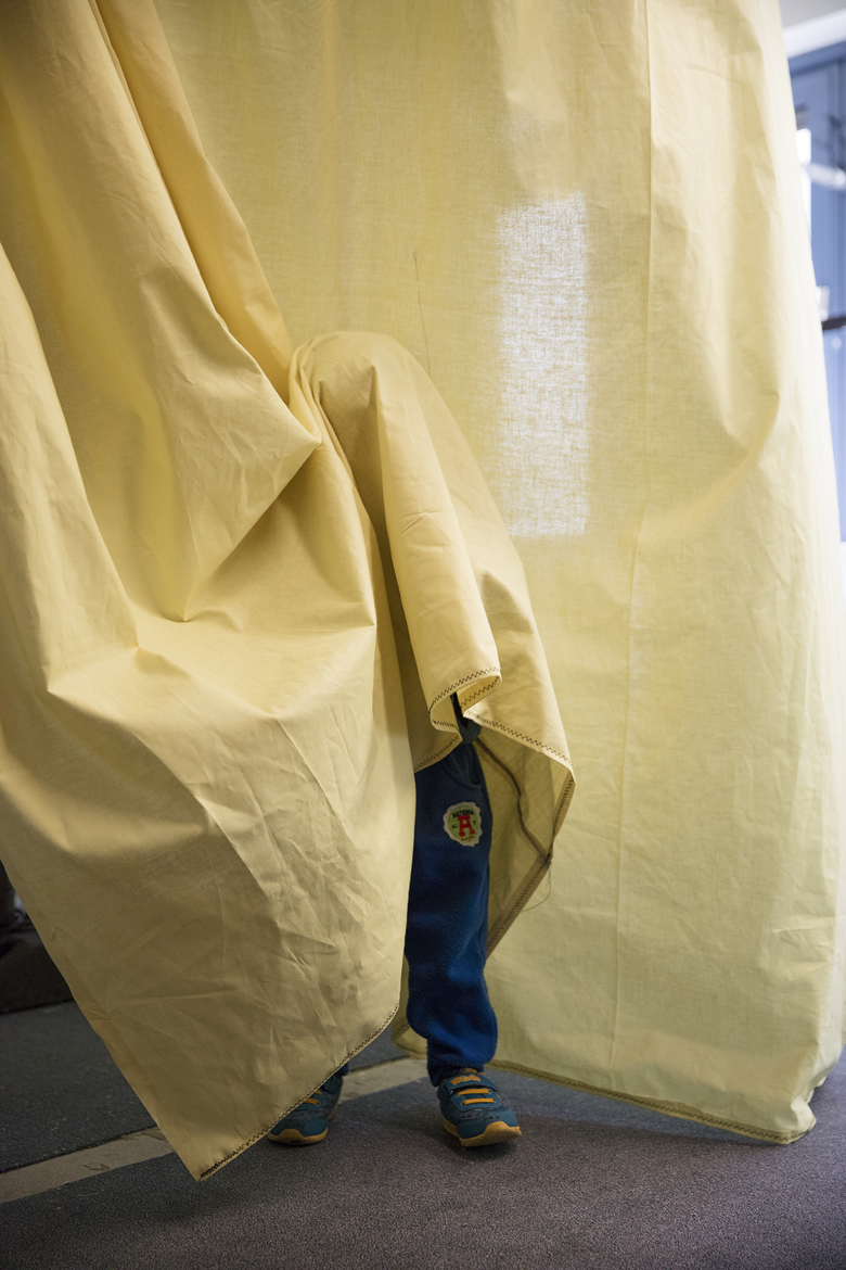 Vorhangstoff, Kabelbindern, Klemmleuchte und Verlängerungssteckdose entwickelten Caramel Architekten eine prototypische Raumstruktur, deren Aufbau den Flüchtenden vor Ort vorgestellt wurde. Direkt im Anschluss daran nahmen die Kinder, Frauen und Männer die Raumstruktur zum Probewohnen in Besitz und begannen mit den bereitgestellten Nähmaschinen erste Stoffbahnen zu Vorhängen umzunähen. In gemeinschaftlicher Arbeit wurde dann ein Grossraum nach dem anderen von einem offenen Matratzenlager zu Wohnungen mit individuell an die jeweilige Bewohnerkonstellation angepassten Raumstrukturen aufgebaut ( Kleinfamilie, Grossfamilie, Wohngemeinschaft).