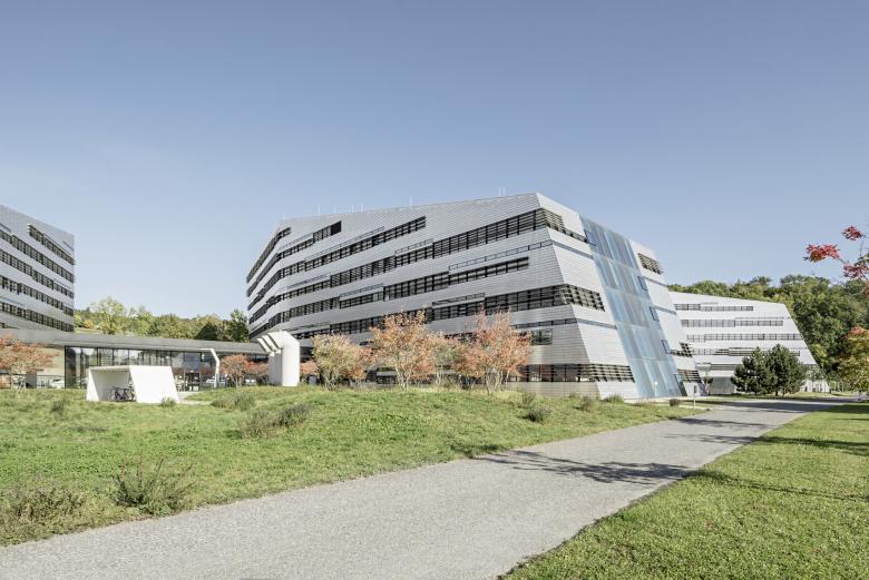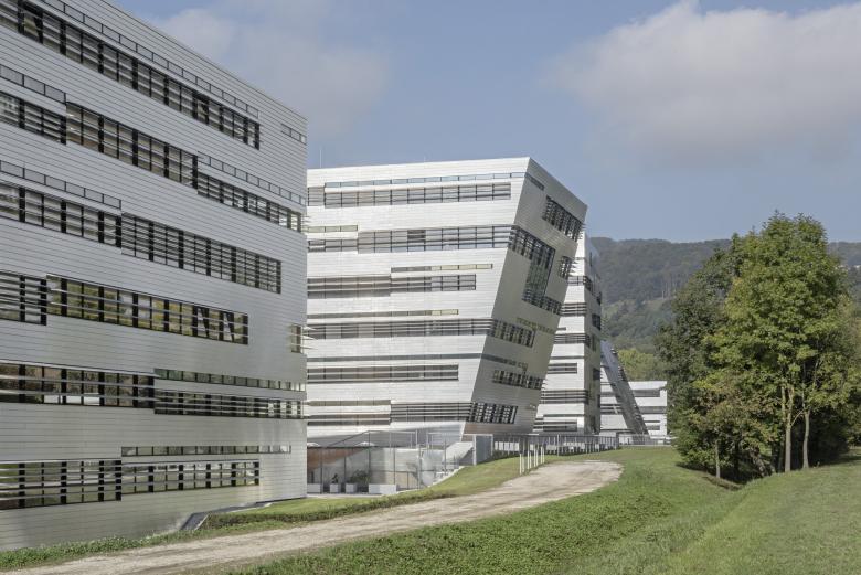 The first construction phase, the Mechatronics, opened in October 2009, already showed how the landscape flows between, over and through the building, with its floating office wings, interlocks with the area and ultimately merges with the building to form a newly interpreted campus.