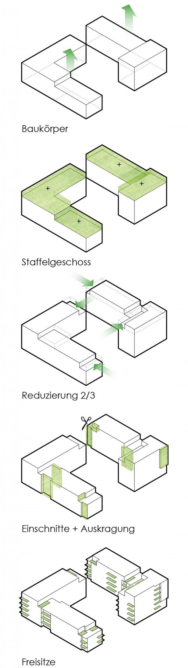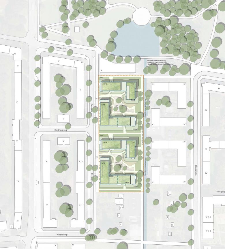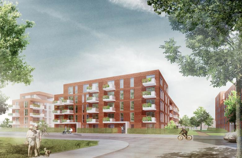 Der Entwurf von czerner göttsch architekten nimmt die charakteristischen Merkmale des Stadtteils – klassische Blockstrukturen und viergeschossige Rotklinkerbauten - auf und interpretiert sie auf eigene Art. So entstehen zwei identitätsstarke Wohnhofanlagen mit „lebendigen“, privaten Innenhöfen, die nach außen mit der Umgebung korrespondieren. Und eine hohe Wohnqualität für künftige Bewohner bieten: Mit flexiblen und „durchdachten“ Grundrissen, die für viele Zielgruppen attraktiv sind. Und: zu 100 % gefördert.