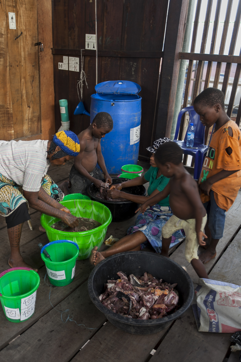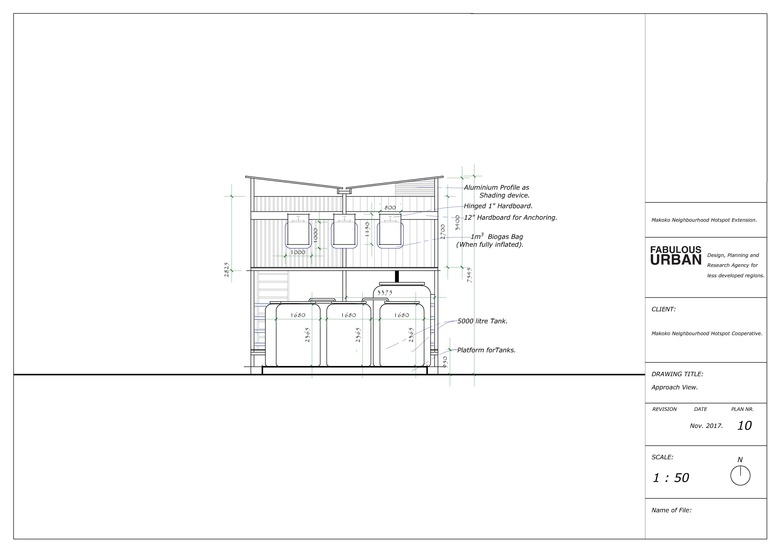 From 2013 to 2017, FABULOUS URBAN developed and implemented the Makoko Neighborhood Hotspot as part of the Makoko Urban Design Toolbox and the Makoko/Iwaya Waterfront Regeneration Plan. The Makoko Neighborhood Hotspot was designed as a technical and social infrastructure for one of Lagos' best-known urban slum settlement that is Makoko. It serves as an infrastructure hub providing urban services such as biogas linked community toilets and as a business incubator promoting waste-to-energy principles. Last but not least, its purpose is to serve at large as a community empowerment tool and learning center. The Hotspot represents more of a concept than a project even though the architectural design aspect was carefully and ambitiously developed. Its conceptualization and building phases confronted the poor underserved Makoko communities with a series of tough and difficult decision-making processes. After the completion of the structure and its inauguration in December 2015 the second project phase led in 2016 to the formation of the “Makoko Neighborhood Hotspot Multipurpose Cooperative Society Limited”, officially registered at the Lagos State Department of Cooperatives. It serves as the operational and administrative body of the Hotspot with its 20 members and a 7-strong management committee, compromising positions of the president, the secretary, and the treasurer, among others. One of the key tasks of the committee is the hiring, payment and supervision of employees. For this purpose, three business plans were drafted to ensure the sustainable set-up and long-term operation of the envisioned Hotspot activities. The implemented business activities – biogas-linked community toilets, biogas production, water treatment, and farming pipes – provide since December 2017, the end of the third project phase, the badly needed infrastructure for roughly 200 people. During the pilot phase, 10 families will receive cooking gas to be refilled at the Hotpot with specifically designed biogas rucksacks. As a business incubator, the Hotspot serves as pilot or prototype approach that could and should be replicated in other parts of the community and in other slum/ low-income settlements in Lagos State. One of the long-term goals of the Neighborhood Hotspot initiative is to inspire the government on how the dramatic lack of infrastructure in many communities and within large parts of the population could be approached, namely with the implemented decentralized strategic yet low-cost interventions.