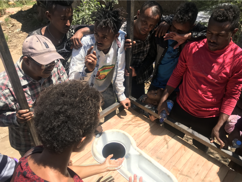 Since 2018, in a highly participatory project development, during which the design, aesthetics, construction, and material as well as governance, operation, and maintenance were discussed with selected and interested residents of two communities in Lagos (Nigeria) and Addis Abeba (Ethiopia), two non-functional, locally produced test mock-ups were built.
