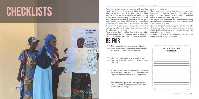 This booklet consists of four chapters designed to be considered either in sequence or independently of each other. Each objective is closely tied to the following sustainable development goals: SDG5, SDG9, SDG10, SDG11, and SDG17. The booklet is also designed to engage the user by provoking thought and generating feedback. Urban designers, planners, project managers, design students, researchers, and enthusiasts for just and sustainable urban development will find this guide useful for charting their own futures. The booklet provides QR links to several reports and videos that can be used for case study analyses on gender inclusive planning techniques and strategies. It also includes ample ‘whitespace’ that can be used for taking notes, critical analysis of points made and making suggestions, all handy for future use.