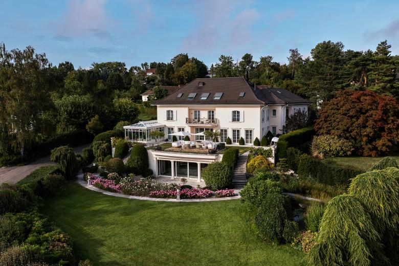 Villa Sophia is a classical 3-storey villa, which was built in the year 2000 on the hills of Küsnacht. Nestled into the lush landscaping of the property, the house offers a rare sense of isolation, while it simultaneously opens up onto a breathtaking panoramic view of Lake Zürich.