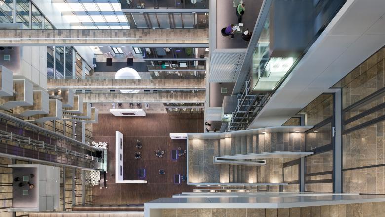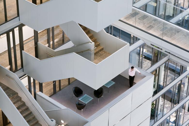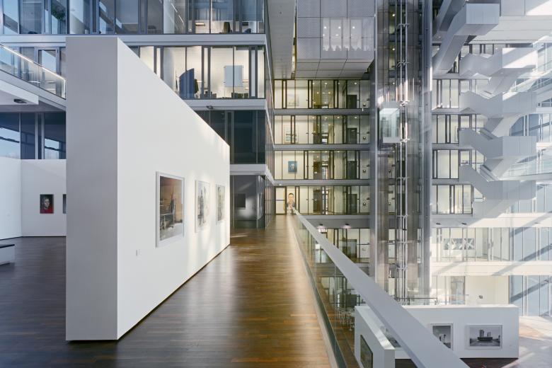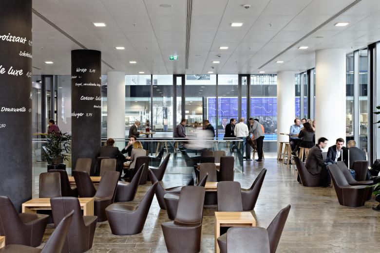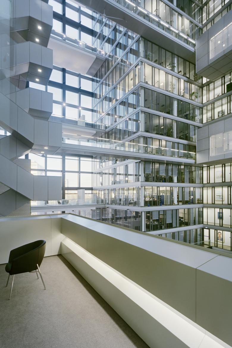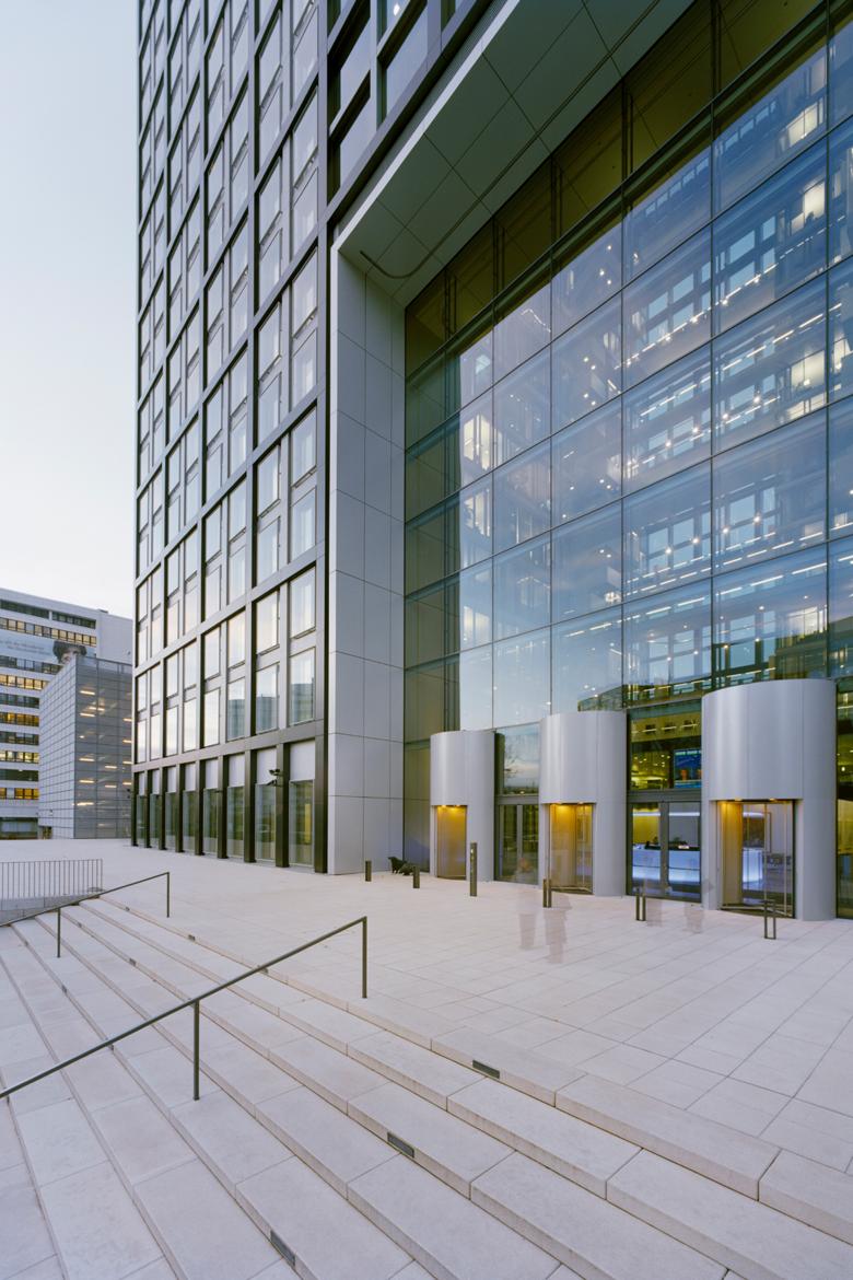 Der Neubau der Deutschen Börse bietet auf ca. 80.000 qm Bruttogeschossfläche Raum für mehr als 2.000 Mitarbeiter des Unternehmens. Ziel war es, ein Identität stiftendes Gebäude zu schaffen, das nicht nur das heterogene städtebauliche Umfeld in Eschborn aufwertet, sondern zugleich die Unternehmenswerte der Deutschen Börse Group, wie Transparenz, Offenheit und Nachhaltigkeit verkörpert.