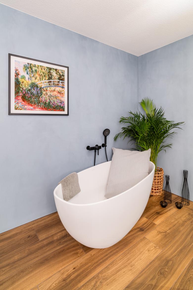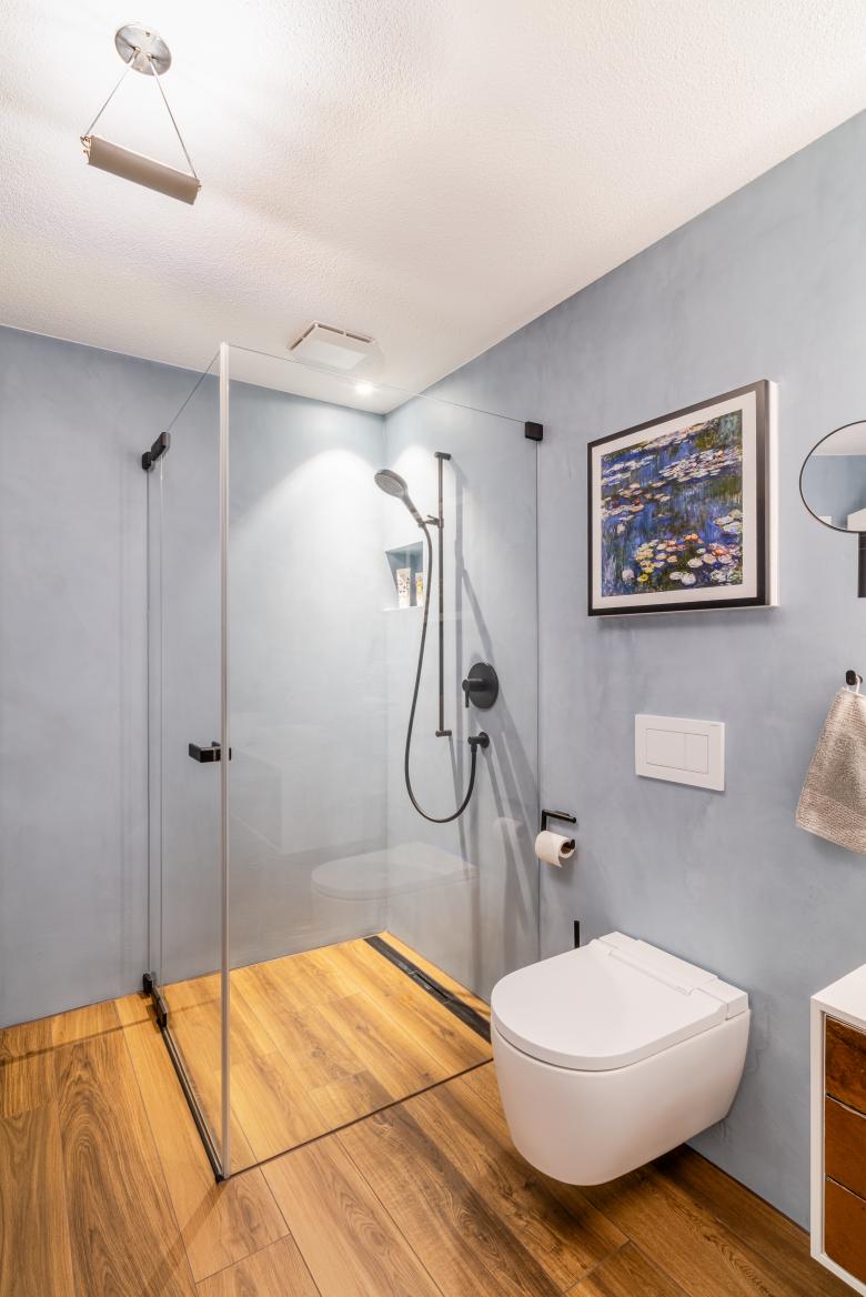 Bereits rund zwei Jahre vor der eigentlichen Ausführung wurden die ersten Entwürfe erstellt. In enger Abstimmung mit den Badberaterinnen und Badberatern von Pura Bagno entstand ein individuelles Raumkonzept. Besonders wichtig war die harmonische Einbindung des Badezimmers in das Gesamtkonzept der Wohnräume.