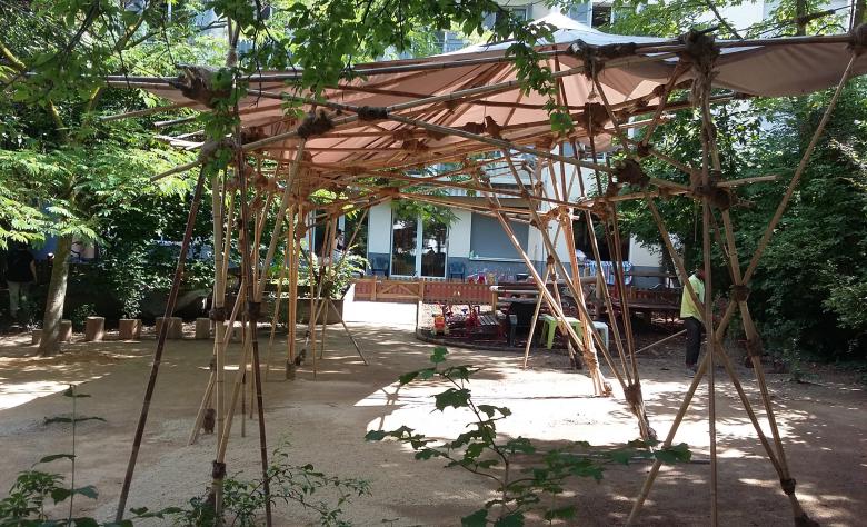 - La réalisation d'un couvert en bambou et toile d'ombrage
