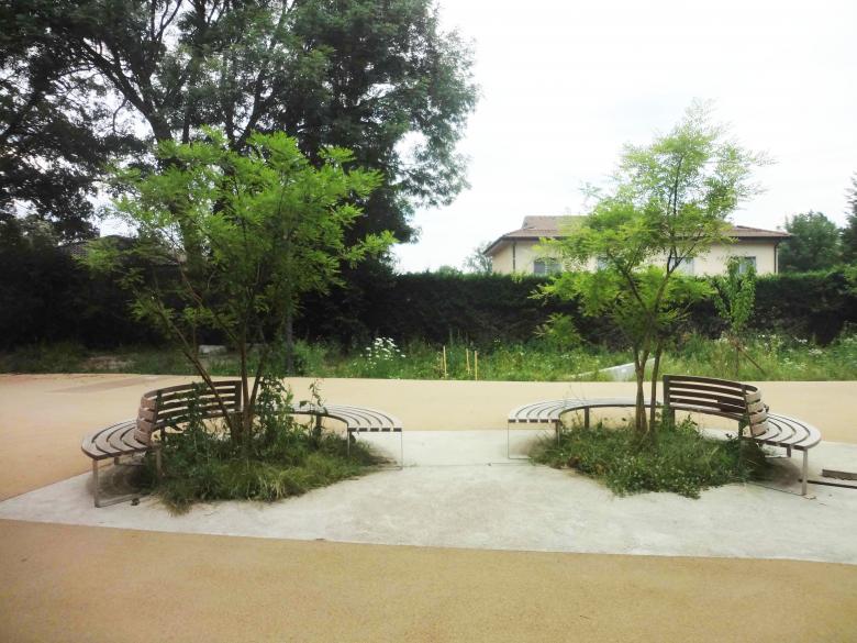 Le paysage : prolongement des cheminements et de la végétation alentour,