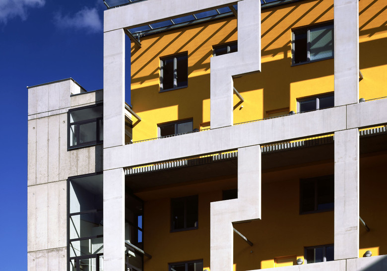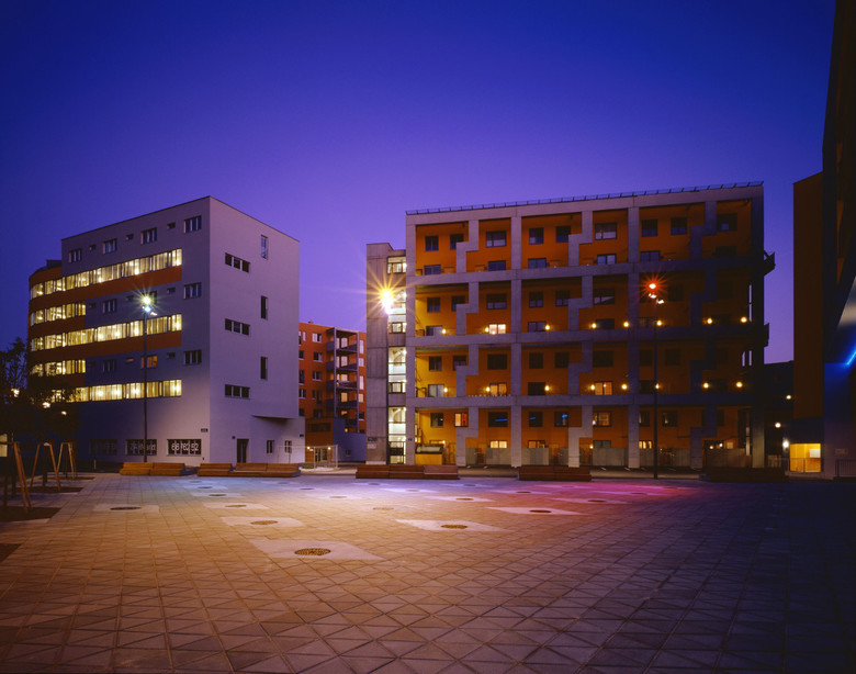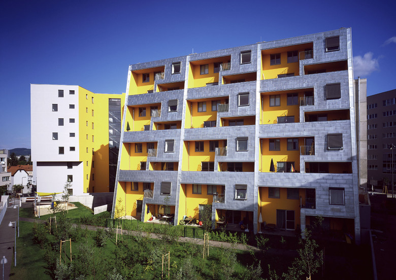 Die ungewöhnliche Widmung des Bebauungsplans erlaubt uns eine ungewöhnliche Form: Indem wir 24 Maisonetten stapeln und versetzen schaffen wir einen Terrassenhaustypus, der mit seiner geneigten Fassade die Sonne best möglich herein lässt. Positiver Sideeffekt der Gestaltung: jede Wohnung hat Querlüftung. Zum Platz hin zeigen wir eine markante Fassade mit Laubengangerschließung - die Bewohner haben Ausblick auf den öffentlichen Platz, inspiriert durch das Shakespearsche Hoftheater. Die Bewohner erzählten uns beim abschließenden Grillfest wie schön es ist im Kabelwerk zu wohnen - unser schönstes Kompliment!