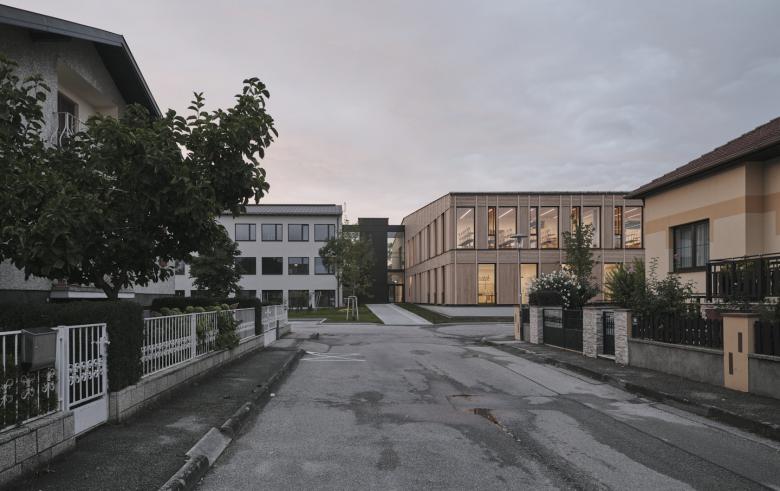 Situation löst die Eingangssituation auf Straßenniveau, dadurch wird städtebaulich ein Ensemble mit der NMS gebildet, die in Retz ein neues Stadtviertel, einen Bildungscampus entstehen lässt. Die Beibehaltung des Charakters